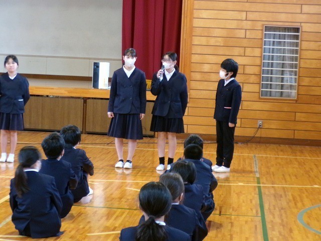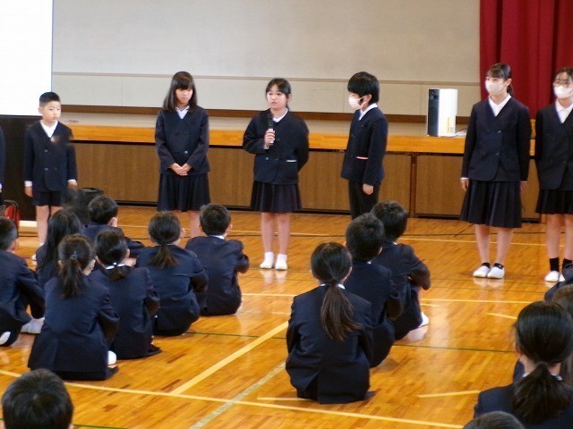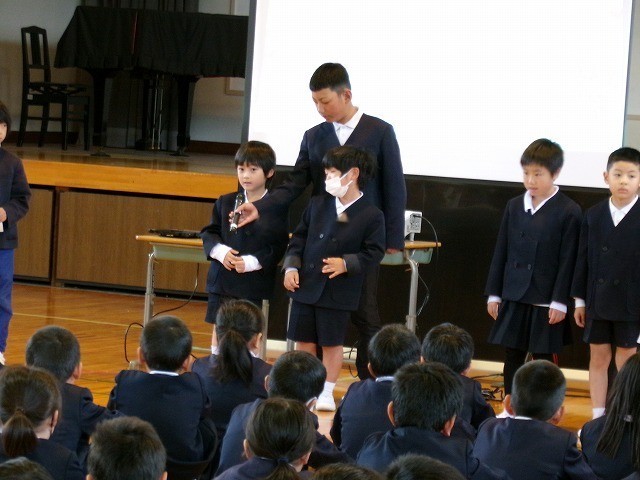 10月のめあての反省を学年の代表の人が上手に発表できました。