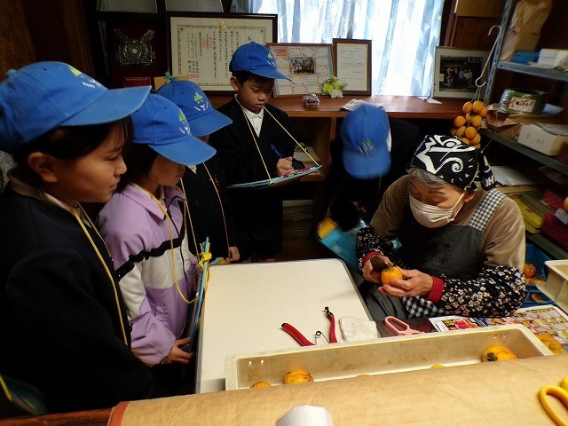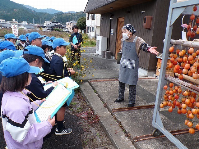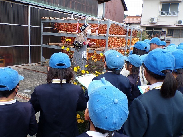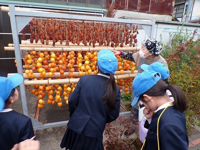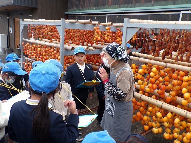 3年生は総合的な学習の一環として、加茂地区の特産物の中の1つのつるし柿について調べています。
