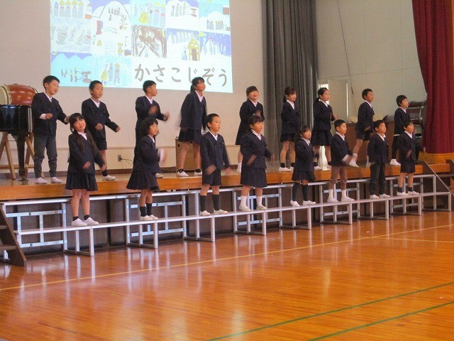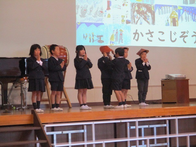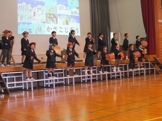 1年生は音楽物語「くじらぐも」、2年生は音楽物語「かさこじぞう」を発表しました。