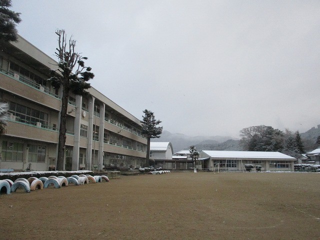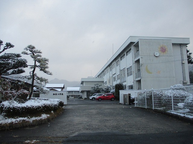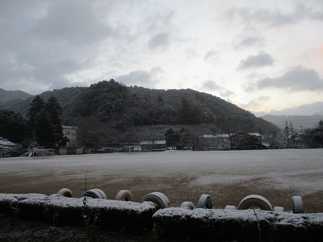 今朝は雪が降り、学校周辺はうっすらと雪化粧でした。