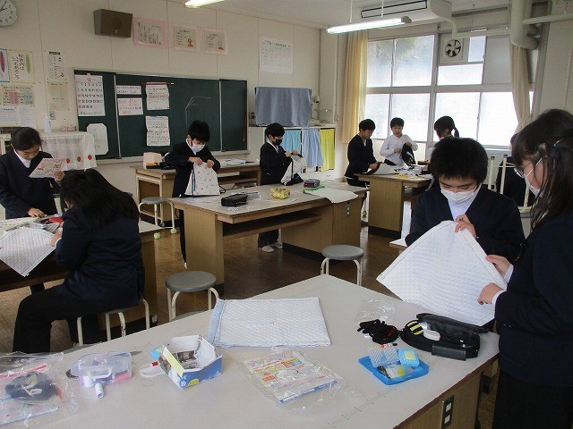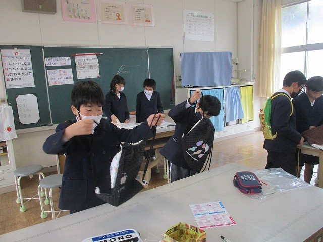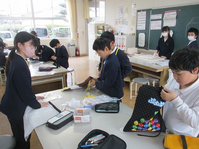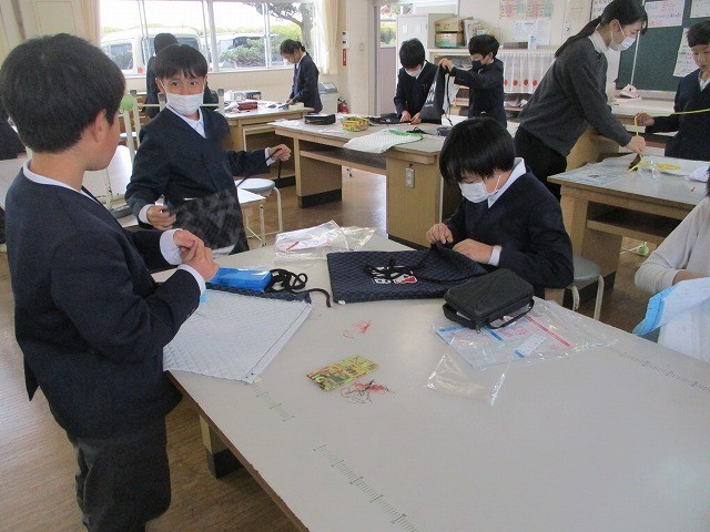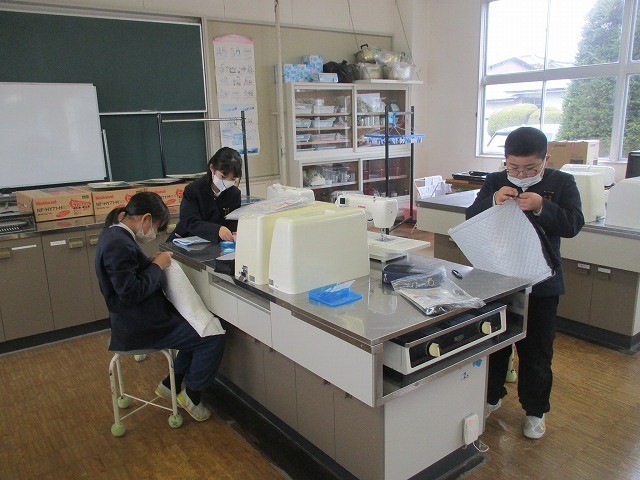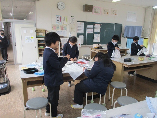5年生が家庭科でナップザックを作りました。