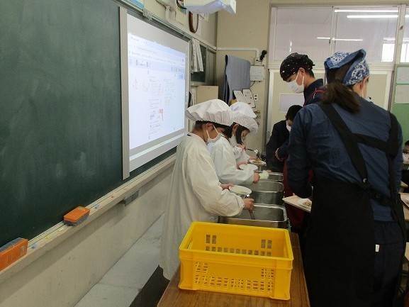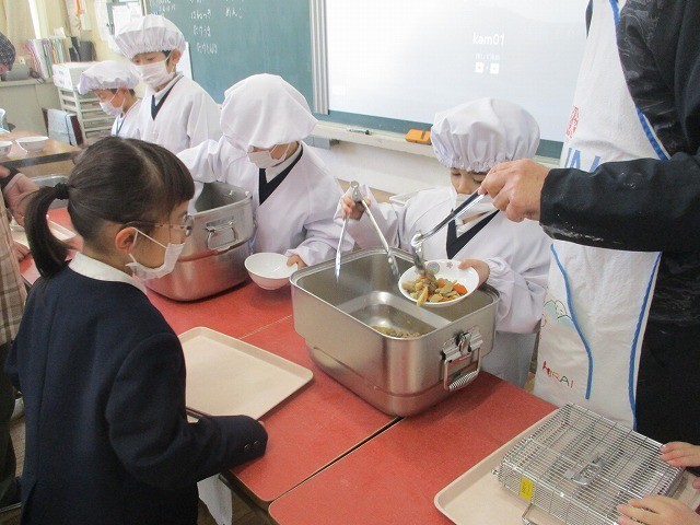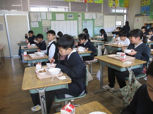 どの学年でも配膳を手際よく行うことができています。