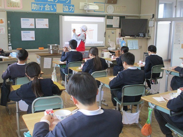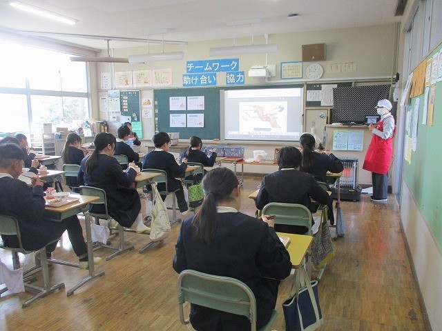 6年生が栄養教諭の先生から給食の時間に、箸の持ち方について教えていただきました。