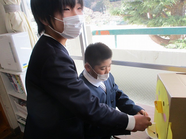 もう1本の箸は添えるだけです。実際に確認しながら給食を食べていました。
