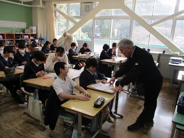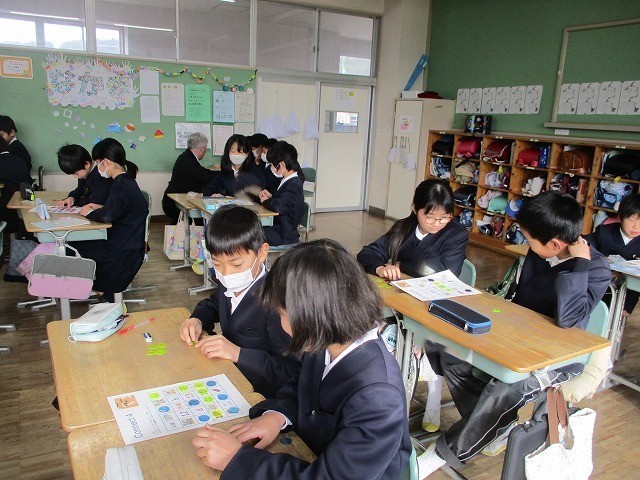 学習の様子 公開日 2026/01/15 更新日 2026/01/15 お知らせ 今日はALTの先生が来てくださる日です。4年生は、英語での場所の名前の言い方を学習しました。その後、おはじきをつかってゲームをしていました。習った英語の言葉や表現が言えるとおはじきをおくことができます。5年生は、2枚のイラストの間違い探しをした後、物の場所の表現を学習しました。「in」「on」「under」「by」等を使った表現です。 +3
