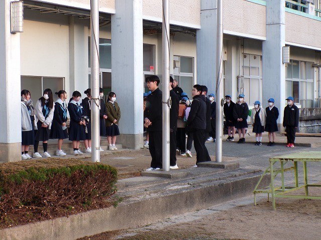 朝の寒いときですが、中学生の元気な声で1日のよいスタートができています。