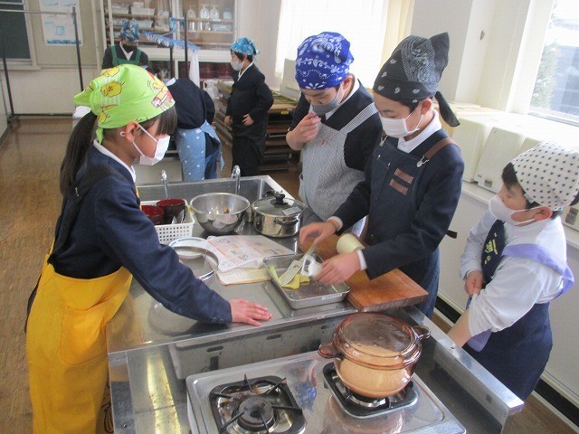 5年生が家庭科の学習で調理実習をしました。