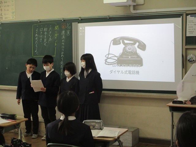グループごとに何の道具を調べるかを決め、種類や移り変わり等、わかったことを発表しました。