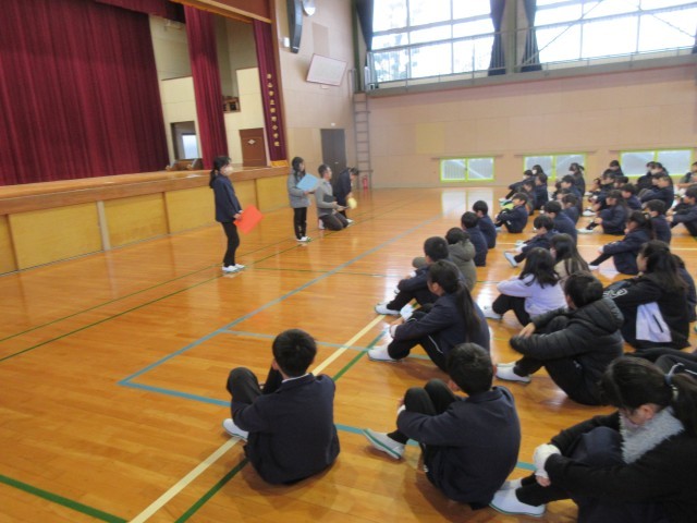 本日、第2学期終業式を行いました。2学期を振り返って3人の児童が思い出を作文にして発表しました。楽しみなこともたくさんある冬休みに入りますが、インフルエンザや交通事故など、健康・安全に注意しながら元気に年末年始を過ごしてほしいと思います。