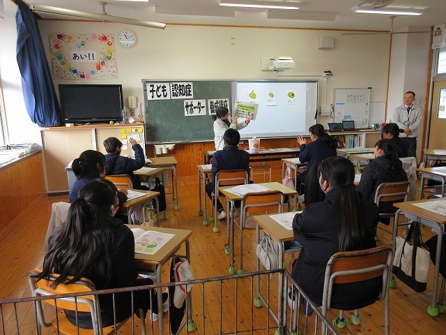 子ども認知症サポーター養成講座を開催しました 公開日 2026/02/02 更新日 2026/02/02 学校紹介 2月2日、津山市社会福祉協議会の地域包括支援センターより2名の講師の方に来校いただき、子ども認知症サポーター養成講座を行いました。6年生を対象に開催し、認知症に関わる知識だけでなく、役割分担して具体的な場面でどのように声かけをしたらよいかを考えたりしました。