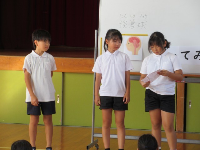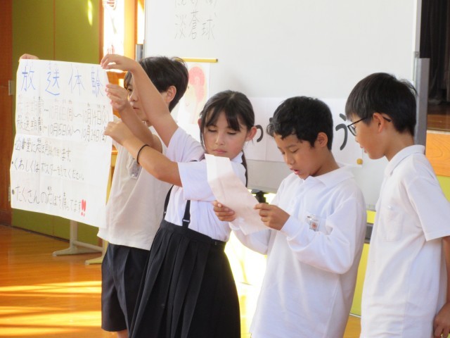 今朝は児童朝礼がありました。校長からは、運動会の保護者の方からの感想を少し紹介させていただきました。子どもたちのがんばりを見ていただき、たくさんの温かいメッセージをありがとうございました。