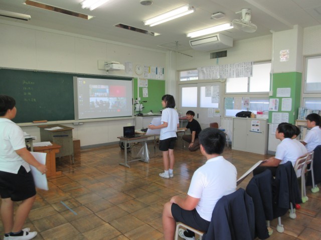 広戸小学校は、3校の中でトップバッターでした。始まる前は、「どきどきする~」と言っていましたが、堂々とした発表ができていて感心しました。一人ひとりが、自分が好きなゲームなどをステンドネームと共に紹介し、一人ひとりがけん玉の技も披露しました。他の2校も、自分の名前や好きなキャラクターや遊び、地域や学校のいいところなどを工夫して紹介してくれました。みんなよく聞いて、自分との共通点などを振り返りでしっかり発表することができていました。次回は12月の「我が町紹介」です。津山のよいところを紹介し、他県のことをもっと知ることができると思うと、12月の会が楽しみです。