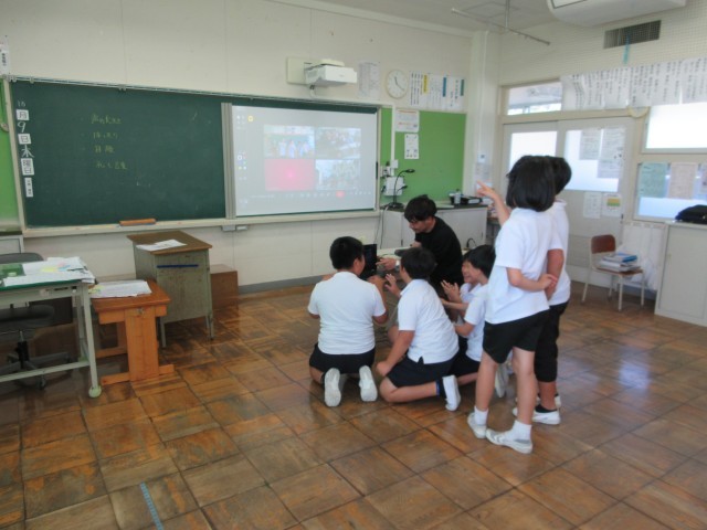 昨年度に引き続き、以前から津山市と交流している長崎県諫早市、島根県出雲市の学校と小学校どうしでも絆を深めようということで行っている取組です。今日は、第一回目の自己紹介・学校紹介でした。