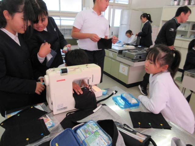 午後は、家庭科室で5・6年生がミシンを使っていました。先生に教えてもらった手順を守りながら、ポケットを丁寧にぬっていました。