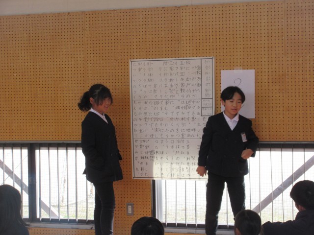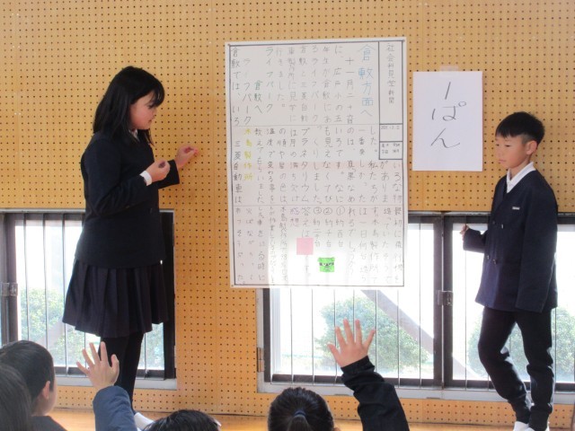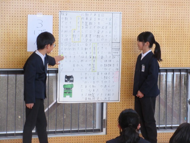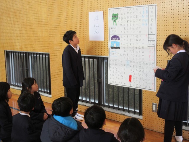 先週金曜日のアピール集会も、いろいろな学年から、学んだこと、普段がんばっていることなど様々な発表がありました。運営委員会の人は、「人権劇」をして、そのことについてたてわり班で考える時間を持ちました。