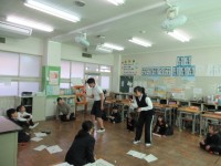 エプロン、三角巾、マスクをつけて家庭科室に集合!5・6年生は、家庭科室で調理実習です。