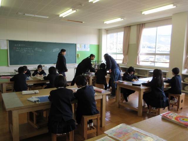写真は、今日の授業の様子です。体育、図工、理科、書写、算数、英語…。教科も様々です。