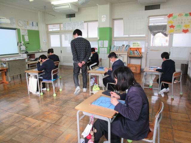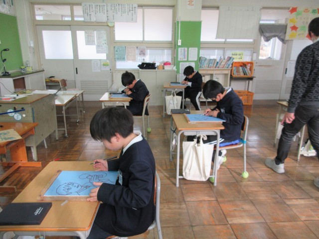 写真では、4年生の図工の様子も載せています。安全に気をつけながら、丁寧に作業をしていて感心しました。できあがりが楽しみです。