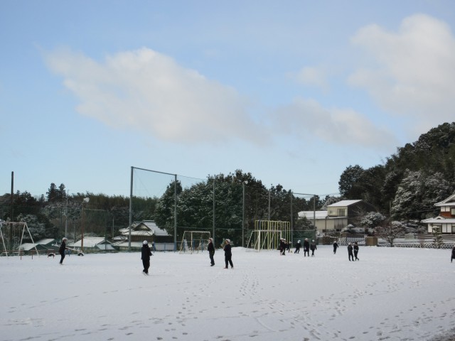 歌いながら登校してきた子がいました。早くも雪玉をつくって手に持ってきた子もいました。