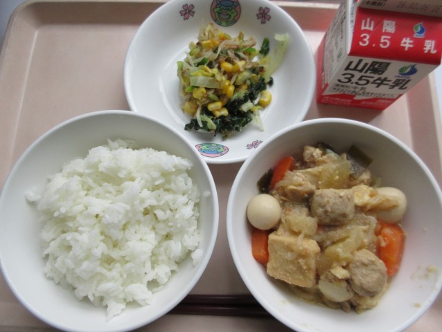 コラボしている本は、「おでんもおんせん」です。おでん達がやってくる、ひなびた温泉で、つぎつぎ繰り出される「かたたたききに きた たまご かたかった かた たたきたかった ききめ あったか かたたたきき かたたたきき あたたかかった」などの「おでんの早口言葉」が楽しい絵本です。児童玄関に手に取れるように本が置いてあります。興味を持って見ている子もいました。コラボをきっかけに読書も給食も、より楽しんでほしいと思います。