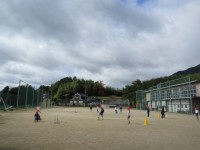 3時間目に、3・4年生が運動場で体育をしていました。2人組になって、パスの練習...