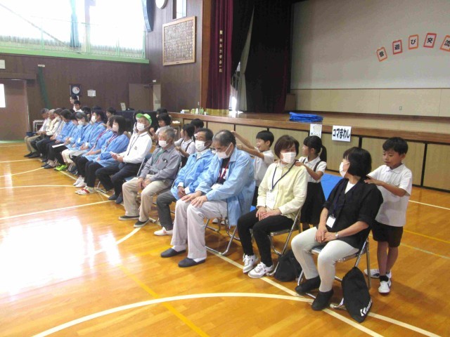 閉会式では、担任の先生からの質問に「楽しかった」と全員の手が挙がりました。できなかったことができるようになったとうれしそうな子も多かったです。最後に、来てくださった方に肩たたきのお礼をした子どもたち。肩たたきでも「気持ちいいなあ。」「上手じゃなあ。」と最後まで優しく接してくださるおじいちゃん、おばあちゃんでした。地域の皆様、お忙しい中、たくさんのご参加と楽しい時間をありがとうございました。今の子どもたちはデジタルで楽しむことが多くなっていますが、体を動かしたり人と触れ合ったりする体験は心も知恵も体も伸ばしてくれることを改めて感じました。急遽の連絡にもかかわらず、ご参観、お手伝いくださった保護者の皆様もありがとうございました。