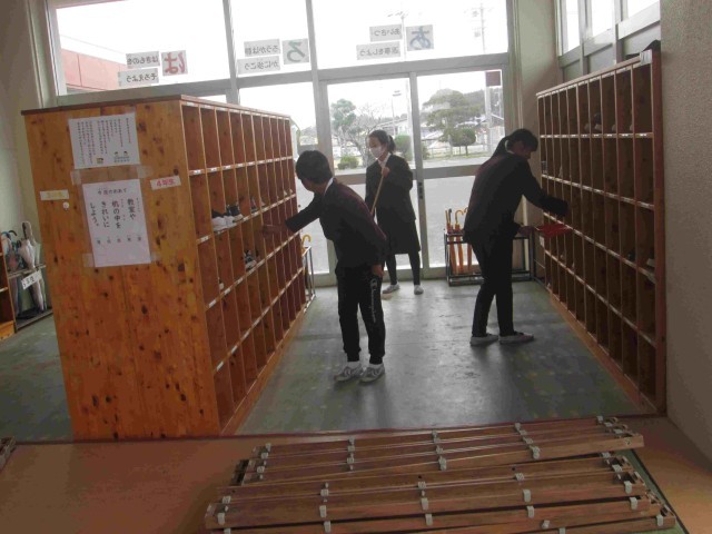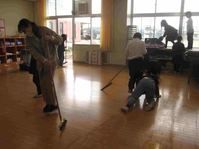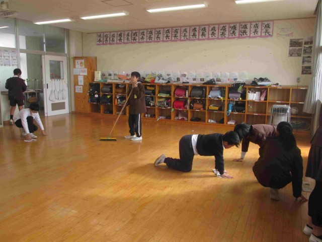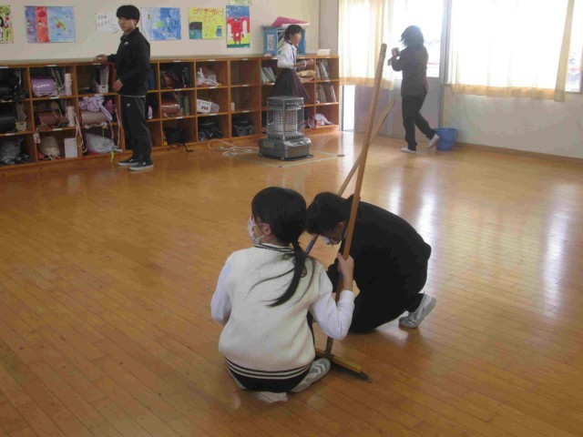 あっという間に年末を迎えようとしています。学校でも大掃除をがんばりました。机やいすの脚のテニスボールについたほこりを取り、廊下へ。大きな教卓や棚も力を合わせて運び出すと、教室は広々としました。みんなで床をはいたり拭いたり、棚の中のごみをかきだしたり。窓や流しを磨いてくれる人も。高学年になれば玄関やトイレなどの分担もあります。少ない人数ですがきれいになるのは、みんなが協力し合って一生懸命に働くからだと思います。掃除時間が終わると、どこもとてもすっきりと気持ちよくなりました。