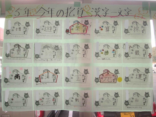 今日は高学年の「今年の抱負」の漢字を紹介します。6年生は中学校進学を意識したものも多くありました。また、友だちとのつながりが強さや学校生活や放課後に取り組んでいることでの目標がはっきりしていることが感じられました。