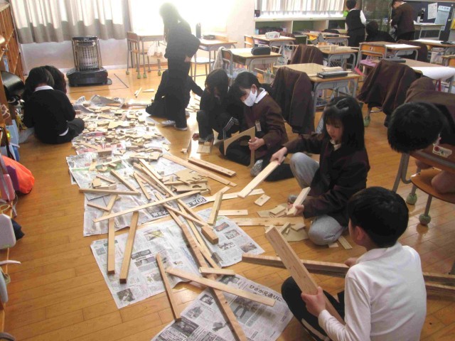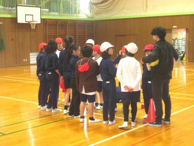 午後の授業を見に行くと、4年生は元気に友だちと協力し合って体育に取り組んでいました。3年生は図工の版画の印刷。2人ずつしかできないので、待っている人は次に取り組む工作の計画を材料の木材を選んだりイメージしたりしていました。どちらの学級もよく先生の話が聞けていました。