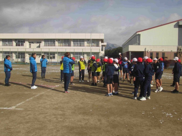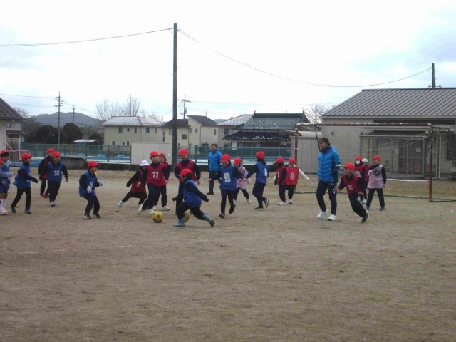 今日はサッカーチーム湯郷ベルの3人の選手の方を講師に、低・高学年でサッカーの学習を行いました。さすがプロのサッカーチーム!夢中で取り組める体を温める運動やキックへの細かな助言などのおかげで、みんな短時間でとてもたくさん体を動かしたり上達したりできました。低学年も高学年も、最後にはゲームを行いました。選手の方も一緒に入ってくださり、見事なドリブルやパスも見せてくださいました。とても寒い日だったのですが、元気いっぱい楽しく運動することができました。