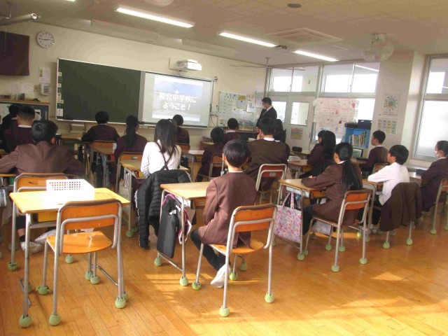 もう一つの入学に向けた学習も行われました。6年生教室では、勝北中の3人の先生方をお迎えし、中学校生活に向けてのお話を聞きました。背筋をピンと伸ばして聞く姿勢からやる気が伝わってきました。中学校で大切なこととして、あいさつや提出物、よりよい自分になろうとする姿勢や人とのかかわり方などについて教えていただきました。今取り組んでいることとつながっていることが多く、小学校でつけた力をさらに伸ばしてほしいなあと思いました。卒業まであと35日!