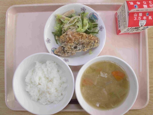 日中は温かく、春がすぐそこまで来ていることを感じます。子どもたちは体育や休み時間の遊びで、元気に運動場を走り回っています。6年生は卒業式の練習が進み、歩き方や別れの言葉の声がさらにしっかりとしてきました。活動するとおなかがすきます。今日の給食にはサクサクとしたサバの竜田揚げや温かい豚汁が出ました。今年度の給食回数も残りわずか。明日の彼岸献立も楽しみです。