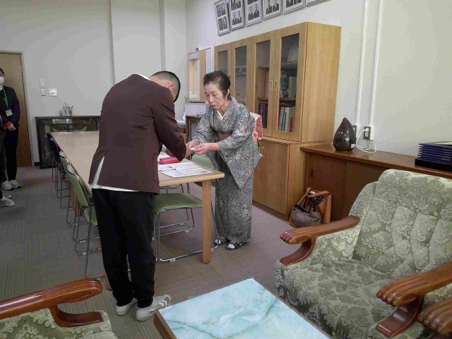 勝加茂小で5・6年生が学習する茶道。今年度も地域におられる茶道の先生から教えていただきました。2年間学習した6年生は「習いのはじめ」という学びのあかしをいただけます。今日は、勝北祭りのステージですでにいただいた児童以外の児童が校長室で授与していただきました。「中学校でも頑張ってください。」という励ましとともに真剣な表情で受け取った子どもたち。いろいろな方に応援していただいていることを改めて感じました。
