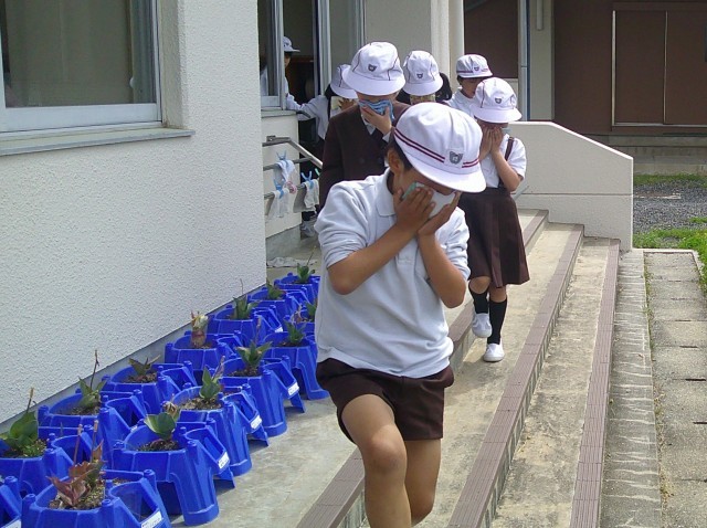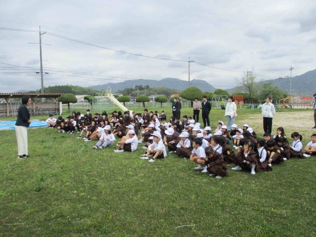 「もしも」に備えて少しでも早くと、火災を想定した避難訓練を行いました。放送を静かに聞くこと、先生の指示に従って素早く避難行動をとること、煙を吸わないように口をふさぐことや「おはしも」の合言葉などの事前指導を受けた子どもたち。自分や周りの人の命が守れるように、運動場の端の避難場所にあつまり、全員の安全確認が終わるまで2分半以下の時間で避難を済ませることができました。後のお話もしっかり聞くことができました。2学期には地震や不審者を想定した避難訓練も行います。毎年のことですが、命にかかわるという緊張感をもって職員も取り組んでいきたいと思います。