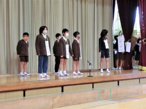 5年生の発表は,劇「輝け!未来学園」と合奏「情熱大陸」です。「輝け!未来学園」の劇を通して,5年生ひとりひとりが,自分たちの得意なことを,部活動としてわかりやすく表現します。この部活動の様子が見どころのひとつです。また,「情熱大陸」の合奏も,高学年らしく迫力のある演奏を披露します。期待してください。