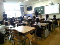 この時間は居住地校交流ということで,学区内に住み誕生寺支援学校に通う友だちと一緒に,鬼を作り,「節分あそび」をしました。とても楽しい交流ができました。