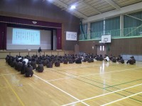 昨年度までと変更し,地区ごとに並んで待つこととしました。6年生から静かに体育館に集まり,通学班児童が並ぶのを待ったり,担当の先生の話を目を見て聞いたりできました。