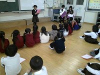お天気に恵まれ,1年生は花の種まきをしていました。自分で選んだ花の種を観察した後,花壇に丁寧に植えました。水やりもがんばってね。