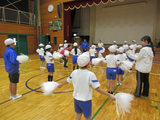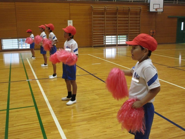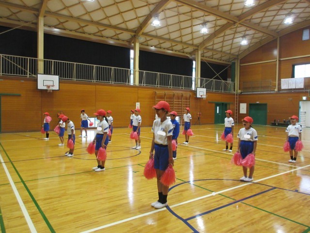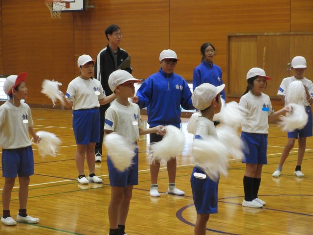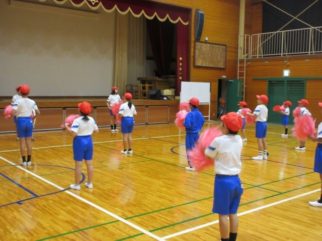 運動場で予定していた練習が、雨のため体育館での練習となりました。明日からの天気も心配です。今日は、応援の練習を体育館と音楽室を交代しながら、最後の確認をしました。体形の位置や踊り、歌など学年ごとに声を出したり、全部を通して何回か繰り返し練習をしたりしました。長い時間かかっていた色も、動きがスムーズになり時間も短縮してきました。後は、みんなの気持ちです。本番では練習以上の声を出してくれることでしょう!!