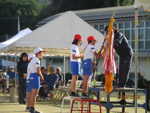 運動会が雨のため5日に延期となり、更に13時からの午後開催となりました。びっくりするほどのいいお天気となり、子ども達は、練習の成果を十分に発揮して、最後までやりきりました。最後まであきらめずに走る姿、応援で力いっぱい声を出す姿、わっしょい津山を笑顔で楽しく踊る姿、全ての競技に、一生懸命さがあふれていました。また、急な変更にもかかわらず、保護者や家族の皆様、地域の皆様がたくさん見に来てくださり、温かい拍手と声援を送って下さり、有り難かったです。PTA種目の玉入れや岩屋城音頭も皆さん参加して下さり盛り上がりました。また、1年生と6年生の親子競技も役員さんが準備をして下さり、ほほえましい競技中の様子や用意していたメッセージなど、感動しました。皆様のおかげで大成功の運動会でした。ありがとうございました。