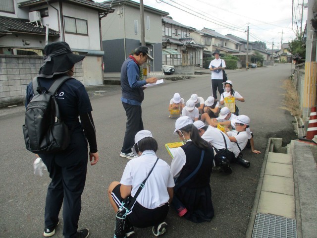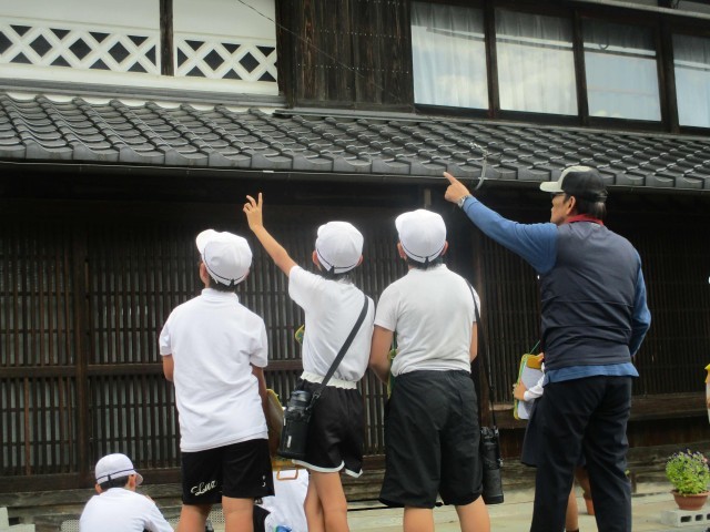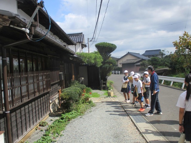 坪井宿を歩いて!! 公開日 2025/10/08 更新日 2025/10/08 児童の様子 10月8日(水) 5・6年生は3・4時間目にふるさと学習で調べている坪井宿に歩いて行きました。樂万さんに詳しく教えていただきながら、教室で学習した建物や常夜灯、一里塚跡、岸田吟香縁のお宅へも見学に行きました。自分の目で実際に見て、学びを深めていました。 +2