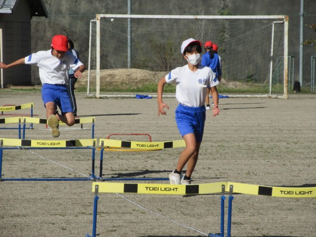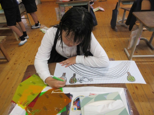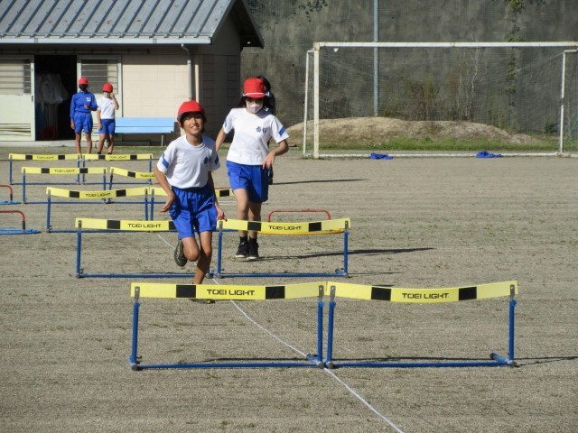 5時間目の授業を見に行くと、3・4年生は図工で「タッチ サークルステンド」を作製していました。自分の好きな絵を描いて、カッターで紙の部分を切り取り、セロハンを貼って色を付けていきます。細かいところや顔などカッターで切るのが難しかったようです。色を上手の組み合わせて、カラフルになるように工夫していました。5・6年生は、運動場で体育のハードル走をしていました。外では初めてだったので、ハードルの高さを低くして利き足で跳べるように練習していました。リズムよく跳ぶのは難しいので、これから練習していきます!!めざそう、世界陸上で活躍した村竹選手!!