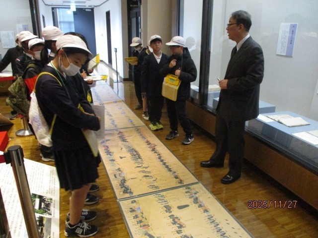 5・6年生は、中正小の6年生と一緒に、洋学史料館と郷土博物館へ校外学習に行きました。洋学史料館では、事前に学習し、学習発表会でも発表した岸田吟香さんのコーナーで、展示されている和英辞典などを見て大喜びでした。担当の人より先に、岸田吟香について詳しいことを伝えていました。郷土博物館では、参勤交代の巻物を見せていただき、社会で習っている最中だったので、興味津々で聴いていました。学習につながった校外学習で、子ども達は更に学びを深めました。