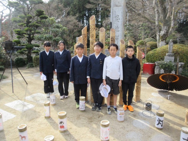 5・6年生が明日から開催される大井西イルミネーシの準備のため、少林寺に行きました。地域の方と一緒に、喬松小学校のみんなが描いた絵が貼られている竹灯籠を並べたり、花ろうそくを長い階段に飾ったり、和傘を風で飛ばされないように杭を打って縛ったりしました。「地域を明るくしようプロジェクト」の一つであるイルミネーションは、今回明日の12月11日(木)から15日(月)までの5日間行われます。子ども達と地域の方々の思いのこもった光の祭典が今から楽しみです。
