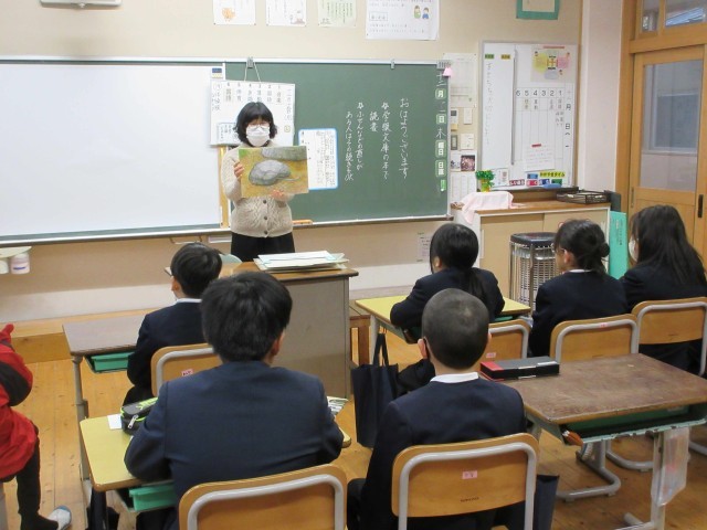 今日は月に一度の読み聞かせの日でした。読んでいただいた低学年の本は「あいたくなっちまったよ」「おもちのきもち」「おおさむこさむ」、中学年は「したきりすずめ」「とかげのぺろちゃん」、高学年は「ありがたいこってす」「賢者のおくりもの」でした。12月と言うこともあり、冬のお話が多くありました。低学年で読んでいただいた「あいたくなっちまったよ」の表紙には、やまねこの顔が大きく描かれていて、その目の中には家族の姿があり、帯には「とうちゃんは、すごいんだぜ。」と書かれています。読んでいて、優しい気持ちになる絵本でした。高学年の「ありがたいこってす」は、ユダヤの昔話でした。読み聞かせで、子ども達が色々な本に出会えることができて、本当にありがたいです。