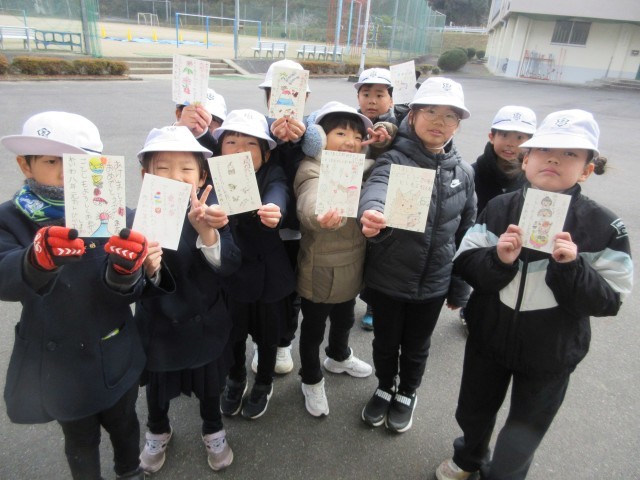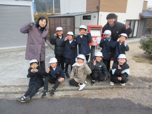 1・2年生は、生活の時間におばあちゃんやおじいちゃん、親戚の人に当てて、年賀状を書いていました。来年の干支やお正月らしい絵も入れて、みんなそれぞれ個性豊かな素敵な年賀状でした。学校の近くの郵便ポストに入れに行こうと出発すると、うれしさいっぱいで、音楽で習った歌をみんなでスキップしながら、大合唱!!ポストに一人ひとりゆっくり、お願いしながら投函しました。帰りは、右に少林寺が見えると、お休みの時に行われたイルミネーションや先生達のコンサートが楽しかったのか「少林寺!」「少林寺!」「盛り上がっていこう!」とまたまた掛け合いの大合唱。その姿がおかしいやら、かわいいやらで、笑いが止まりませんでした。動画をお届けできないのが残念です!