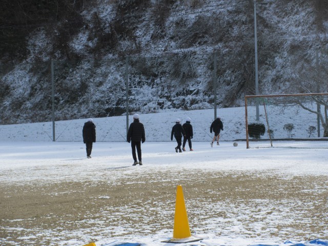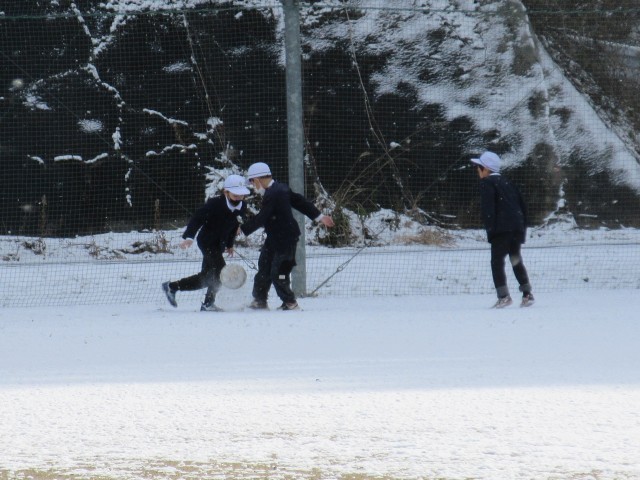 日が当たらず、雪が残っている運動場では、楽しそうにサッカーをしていました。いつもと違う環境でのサッカーも雪の日ならではの醍醐味のようです。