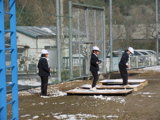 昨日から今朝にかけての雪で、校舎や運動場も一面白く雪化粧。登校時にはアスファルトが凍結していて、とても滑りやすく大変でした。子どもたちがけがをしないか心配していましたが、だんだんと晴れてきて雪や凍った路面も解け、業間休みにはいつも通り元気に遊ぶ姿が見られました。