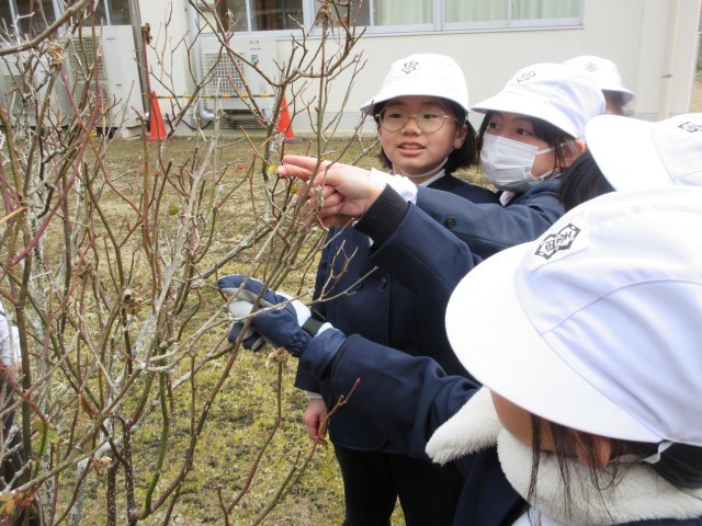 今日のお昼の放送で、「みの虫を見つけたら校長先生に教えてね。」と呼びかけたところ、さっそく嬉しい反応がありました!お昼休み、元気いっぱいの2年生たちがやってきて、「校長先生、いたよ!」と案内してくれたのは、中庭のバラの木。みんなが指さす先をよく見てみると……そこには、本当にかわいらしい「みの虫」がぶら下がっていました。しかも、1つではなく2つ、3つと見つかり、その発見にびっくり!放送をしっかり聞いて、すぐに行動してくれた2年生の優しさと好奇心に、とても心が温まった昼休みでした。