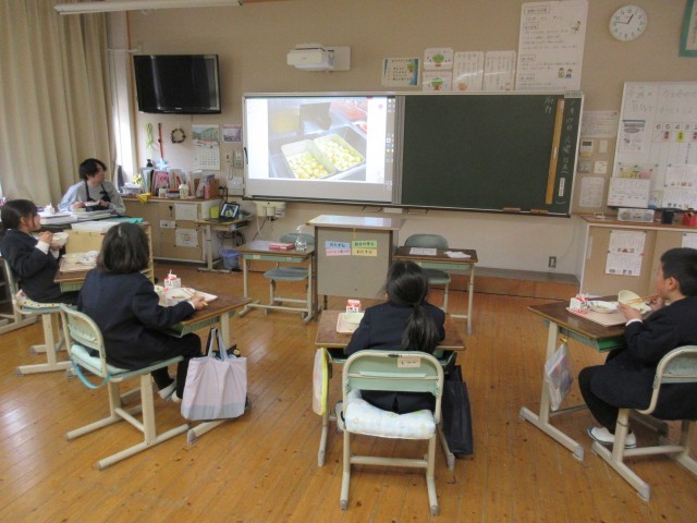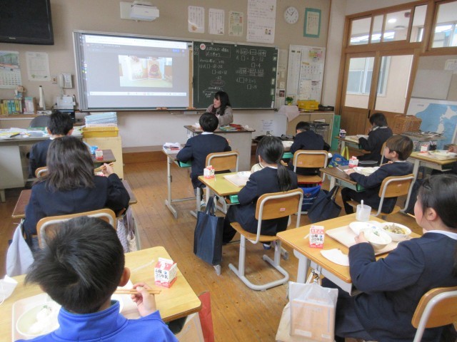 今日の給食は「「図書コラボ給食」でした。今回のお話は「おでんもおんせん」という題名の絵本で、おでん達がひなびた温泉にやってきて、「おでんの早口ことば」が次々繰り出されます。委員会の子ども達が、その絵本を読み聞かせしている動画を見ながら、今日の給食の献立、おでんを食べました。本に出てくる料理や食べ物を食べることで、給食と読書の両方に興味・関心を持ってほしいと企画された「図書コラボ給食」です。第2弾も楽しみです。